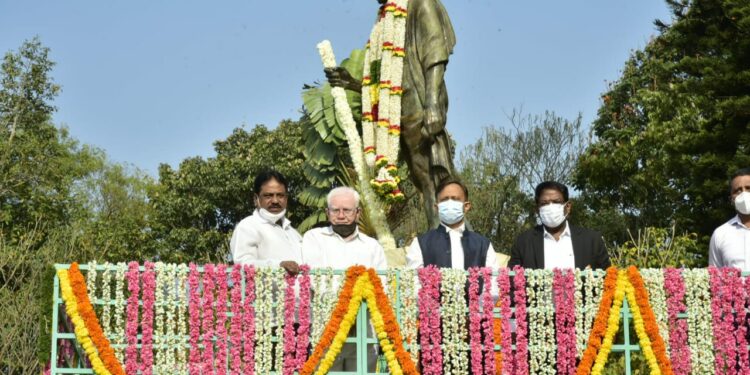 ಸರ್ವೋದಯ ದಿನಾಚರಣೆ ಅಂಗವಾಗಿ ಶನಿವಾರ ನಗರದ ಮಹಾತ್ಮ ಗಾಂಧೀಜಿ ರಸ್ತೆಯಲ್ಲಿರುವ ಗಾಂಧೀಜಿಯವರ ಪ್ರತಿಮೆಗೆ ಆಡಳಿತಗಾರರಾದ ಗೌರವ್ ಗುಪ್ತಾ ಹಾಗೂ ಆಯುಕ್ತರಾದ ಎನ್.ಮಂಜುನಾಥ್ ಪ್ರಸಾದ್ ರವರು ಮಾಲಾರ್ಪಣೆ ಹಾಗೂ ಪುಷ್ಪ ನಮನ ಸಲ್ಲಿಸಿದರು