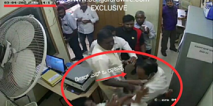 ಬೆಂಗಳೂರು : ಬೃಹತ್ ಬೆಂಗಳೂರು ಮಹಾನಗರ ಪಾಲಿಕೆ ಕೇಂದ್ರ ಕಚೇರಿಯ ಉಪ ಅರಣ್ಯ ಸಂರಕ್ಷಣಾಧಿಕಾರಿ ವಿಭಾಗದಲ್ಲಿ ಹಾಡಹಗಲೇ ಅಧಿಕಾರಿ ಹಾಗೂ ಗುತ್ತಿಗೆದಾರರ ಮಧ್ಯೆ ಫೈಟಿಂಗ್, ಪರಸ್ಪರ ಮಾತಿನ ಚಕಮಕಿ ನಡೆದಿರೋದು ತಡವಾಗಿ ಬೆಳಕಿಗೆ ಬಂದಿದೆ.