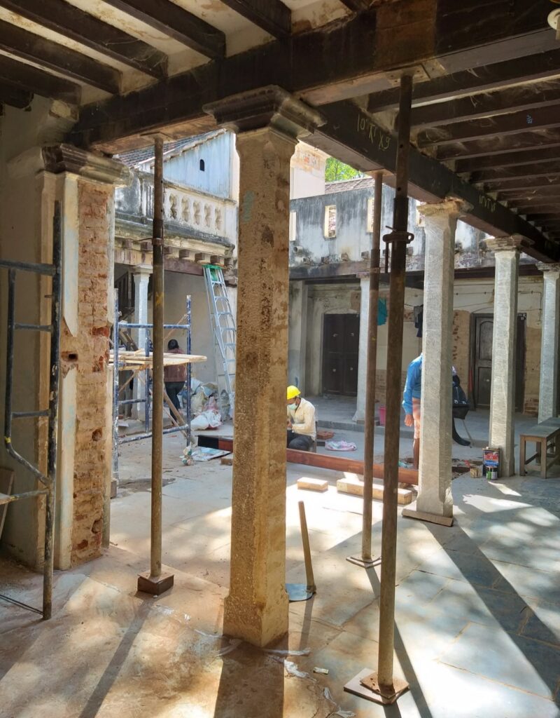 “ಕಳೆದ ವರ್ಷದ ನವೆಂಬರ್ನಲ್ಲಿ ಜೀರ್ಣೋದ್ಧಾರ ಕೆಲಸ ಶುರುವಾಗಿದೆ. ಕೆಲಸ ಆರಂಭಿಸುವ ಮುನ್ನ ವ್ಯಾಪಕ ಅಧ್ಯಯನ-ಸಂಶೋಧನೆ ಮಾಡಲಾಗಿದೆ. ಎಲ್ಲಿಯೂ ಮೂಲ ಸ್ವರೂಪಕ್ಕೆ ಧಕ್ಕೆ ಇಲ್ಲದೆ ಇಡೀ ಕಟ್ಟಡವನ್ನು ಜೀರ್ಣೋದ್ಧಾರ ಮಾಡಲಾಗುತ್ತಿದೆ. ಅಲ್ಲಲ್ಲಿ ಶಿಥಿಲಗೊಂಡಿರುವ ಕಂಬಗಳು, ಮರದ ಕೆತ್ತನೆ, ಹಲಗೆಗಳು ಇತ್ಯಾದಿಗಳನ್ನು ಅತ್ಯಂತ ಜತನದಿಂದ ರಿಪೇರಿ ಮಾಡುವ ಅಥವಾ ಅದೇ ಶೈಲಿಯಲ್ಲಿ ಬದಲಿಸುವ ಕೆಲಸ ನಡೆಯುತ್ತಿದೆ” ಎಂದು ಎಸ್ತೆಟಿಕ್ ಆರ್ಕಿಟೆಕ್ಟ್ ಸಂಸ್ಥೆಯ ಸಂಸ್ಥಾಪಕಿ ಯಶಸ್ವಿನಿ ಶರ್ಮ ಹೇಳಿದ್ದಾರೆ.