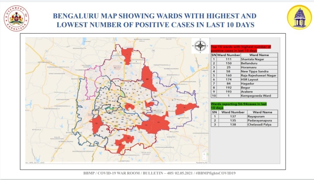 ಕರೋನಾ ಸೋಂಕು ಹೆಚ್ಚಳವಿರುವ ಟಾಪ್ -10 ವಾರ್ಡ್ ಗಳು
