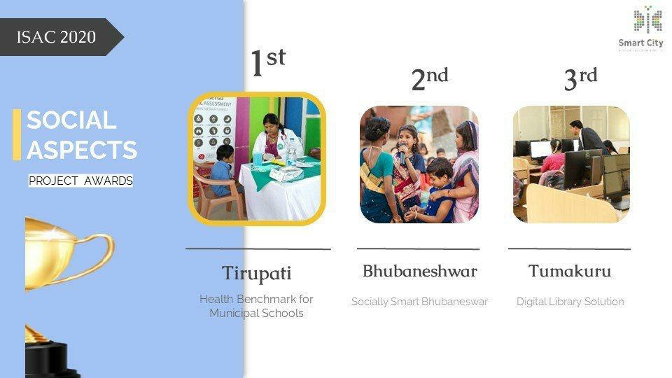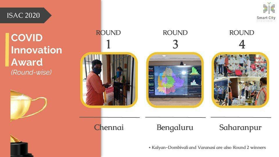 ಕೇಂದ್ರ ಸರ್ಕಾರದ ನಗರಾಭಿವೃದ್ಧಿ ಇಲಾಖೆಯ ವತಿಯಿಂದ ರಾಷ್ಟ್ರ ಮಟ್ಟದಲ್ಲಿ ನಡೆದ ಈ ವಿವಿಧ ಸ್ತರದ ಸ್ಪರ್ಧೆಗಳಲ್ಲಿ, ಕೋವಿಡ್ ತುರ್ತು ಪರಿಸ್ಥಿತಿಯ ನಿರ್ವಹಣೆಯಲ್ಲಿನ ನೂತನ ಅವಿಷ್ಕಾರಕ್ಕೆ ನೀಡುವ ಪ್ರಶಸ್ತಿ ಬೆಂಗಳೂರು ಸ್ಮಾರ್ಟ್ ಸಿಟಿಗೆ ಲಭಿಸಿದೆ. ಅದೇ ರೀತಿ ತುಮಕೂರು ಸ್ಮಾರ್ಟ್ ಸಿಟಿಯ ಡಿಜಿಟಲ್ ಗ್ರಂಥಾಲಯ ಯೋಜನೆಗೆ ರಾಷ್ಟ್ರ ಮಟ್ಟದಲ್ಲಿ 3ನೇ ಸ್ಥಾನ ದೊರಕಿದೆ.