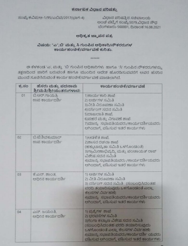 ಅಲ್ಲದೆ ವಿಧಾನಪರಿಷತ್ ವಿವಿಧ ಕಚೇರಿಗಳಲ್ಲಿ ಪಾರದರ್ಶಕತೆ ಹಾಗೂ ದಕ್ಷತೆ ಮೂಡಿಸಲು ಸಭಾಪತಿ ಬಸವರಾಜ ಹೊರಟ್ಟಿ ಯಶಸ್ವಿಯಾಗಿದ್ದಾರೆ. ಈ ಕ್ರಮ ಸಚಿವಾಲಯದ ಆಡಿತದಲ್ಲಿ ತೀವ್ರ ಚರ್ಚೆಗೆ ಗ್ರಾಸವಾಗಿದೆ. ಆ.18 ರಂದು ಅಧಿಸೂಚನೆ ಹೊರಡಿಸಿದ್ದು ಉಪಕಾರ್ಯದರ್ಶಿ, ಅಧೀನ ಕಾರ್ಯದರ್ಶಿ ಶಾಖಾಧಿಕಾರಿಗಳು, ಹಿರಿಯ ಸಹಾಯಕರು, ಸಹಾಯಕರು ಮತ್ತು ಕಿರಿಯ ಸಹಾಯಕರನ್ನೊಳಗೊಂಡ 30 ಜನರನ್ನು ಬೇರೆ ಬೇರೆ ವಿಭಾಗಗಳಿಗೆ ವರ್ಗಾಯಿಸಲಾಗಿದೆ.