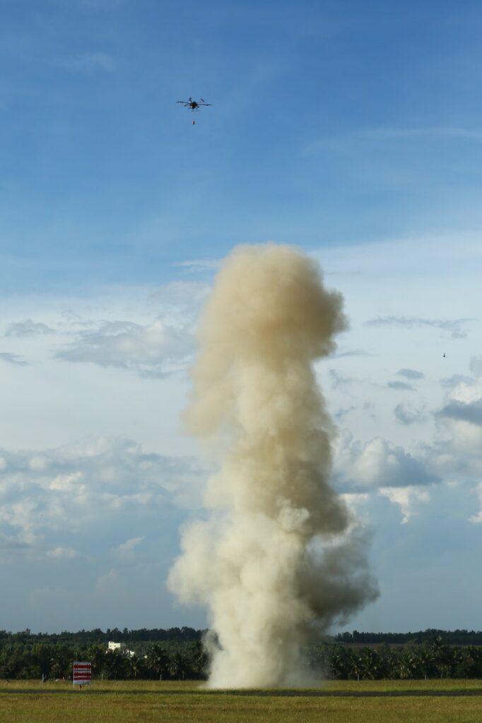 ಕೆಲ ಸಮಯ ಶತ್ರುವಿನ ಸುತ್ತ ಮೇಲಿಂದ ಹಾರಾಟ ನಡೆಸಿದ ‘ಯೋಧ’ ಡ್ರೋಣ್ ಗಳು ತನ್ನೊಳಗೆ ಅಳವಡಿಸಿದ್ದ ಬಾಂಬ್ ಗಳನ್ನು ಹಾಕಿದವು. ಇದೇ ಹೊತ್ತಿನಲ್ಲಿ ಸಣ್ಣ ಗಾತ್ರದ ‘ಘಾತಕ್’ ಡ್ರೋಣ್ ಗಳು ವೈರಿ ನೆಲೆಯತ್ತ ನುಗ್ಗಿ ತಮ್ಮನ್ನೇ ಸ್ವತಃ ಸ್ಪೋಟಿಸಿಕೊಂಡವು. ಇದರಿಂದಾಗಿ ವೈರಿ ನೆಲೆಯು ಸಂಪೂರ್ಣ ಭಸ್ಮವಾಯಿತು. ಈ ರೀತಿ ಸಾಮಾಹಿಕ ಡ್ರೋಣ್ ದಾಳಿ ಮೂಲಕ ಮೂರು ಟಾರ್ಗೆಟ್ ಗಳನ್ನು ಯಶಸ್ವಿಯಾಗಿ ಸ್ಪೋಟಿಸಲಾಯಿತು.
