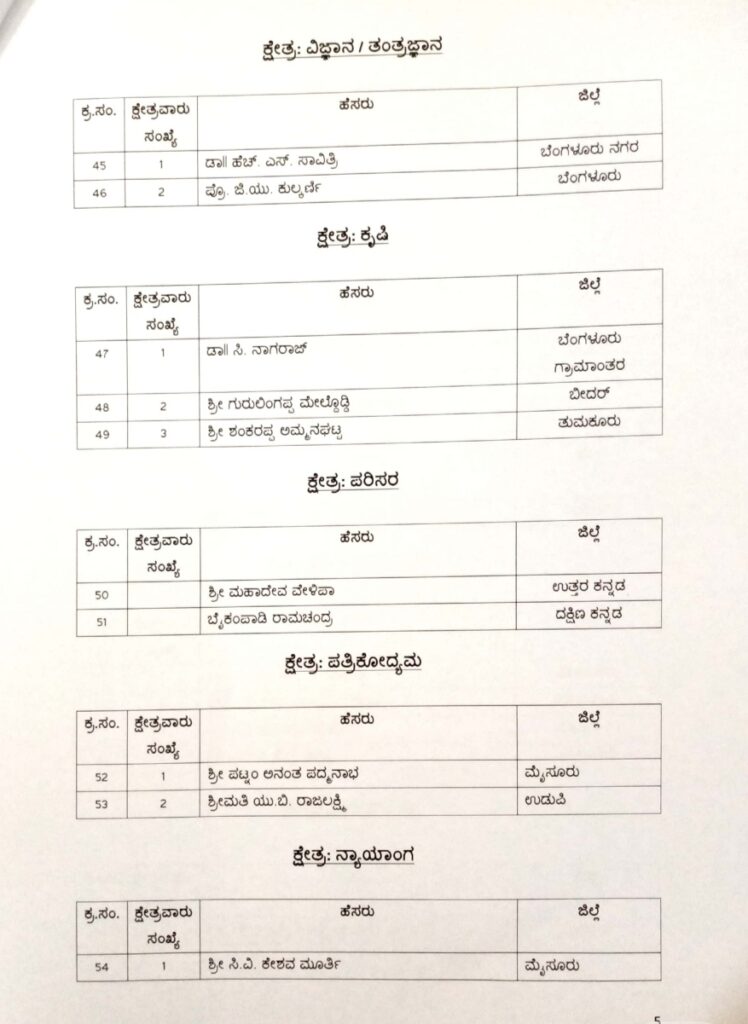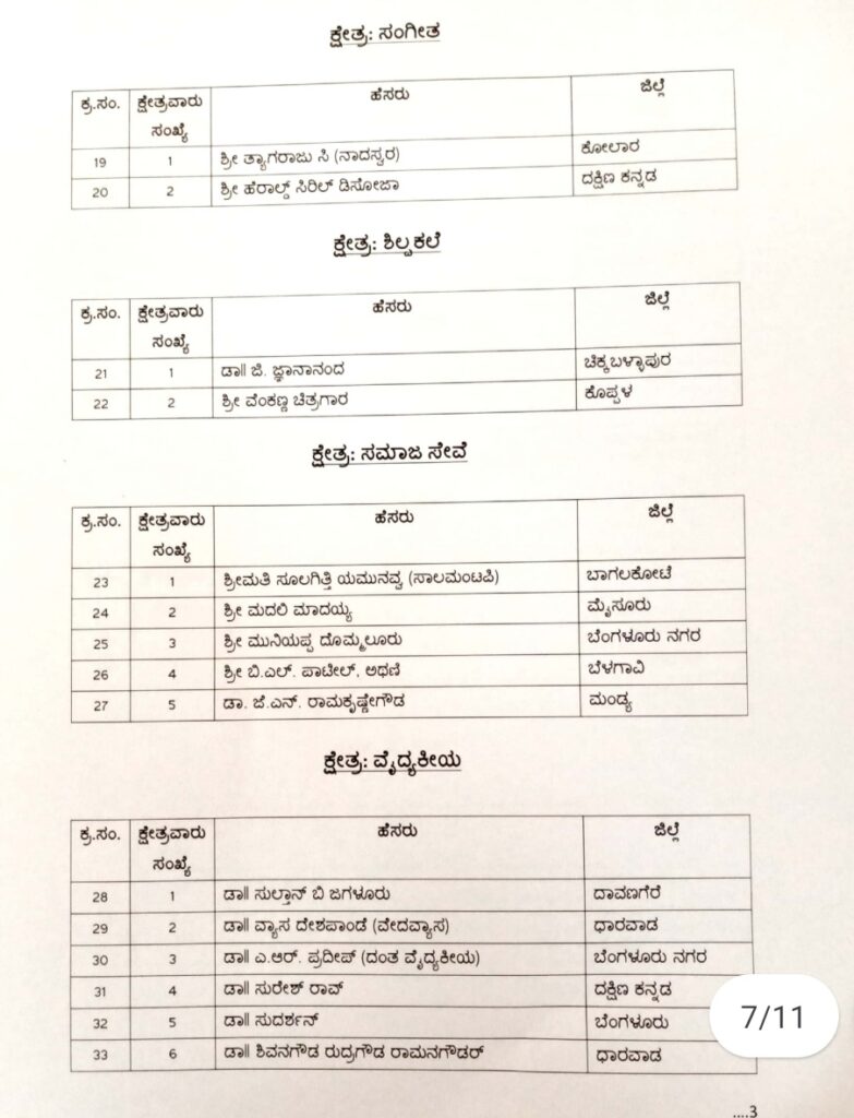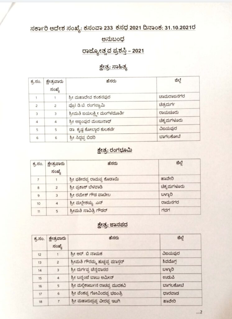 2020-21ನೇ ಸಾಲಿನ ಕನ್ನಡ ರಾಜ್ಯೋತ್ಸವ ಪ್ರಶಸ್ತಿ ಪುರಸ್ಕೃತರ ಪಟ್ಟಿ ಈ ಕೆಳಕಂಡಂತಿದೆ :