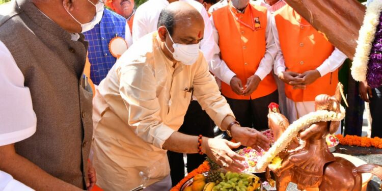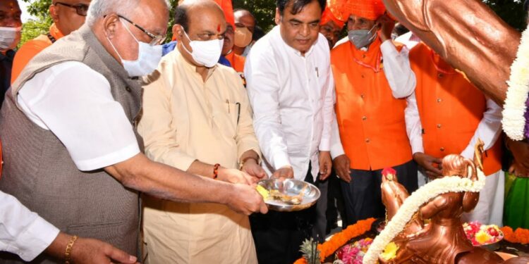 ಮುಖ್ಯಮಂತ್ರಿ ಬಸವರಾಜ ಬೊಮ್ಮಾಯಿ ಅವರು ಛತ್ರಪತಿ ಶಿವಾಜಿ ಅವರ 395 ನೇ ಜಯಂತಿ ಉತ್ಸವದ ಅಂಗವಾಗಿ ಬೆಂಗಳೂರಿನಲ್ಲಿ ಇಂದು ಸದಾಶಿವನಗರ ಬಳಿಯಿರುವ ಶಿವಾಜಿ ಪ್ರತಿಮೆಗೆ ಪುಷ್ಪಾರ್ಚನೆ ಮಾಡಿದರು. ಈ ಸಂದರ್ಭದಲ್ಲಿ ಉನ್ನತ ಶಿಕ್ಷಣ ಸಚಿವ ಡಾ. ಅಶ್ವಥ್ ನಾರಾಯಣ್, ಮಾಜಿ ಶಾಸಕ ಎಂಜಿ ಮೂಳೆ, ಶ್ರೀ ಗೋಸಾಯಿ ಮಹಾಸಂಸ್ಥಾನ ಮಠದ ಮಂಜುನಾಥ ಭಾರತೀ ಶ್ರೀಗಳು ಈ ಸಂದರ್ಭದಲ್ಲಿ ಉಪಸ್ಥಿತರಿದ್ದರು.