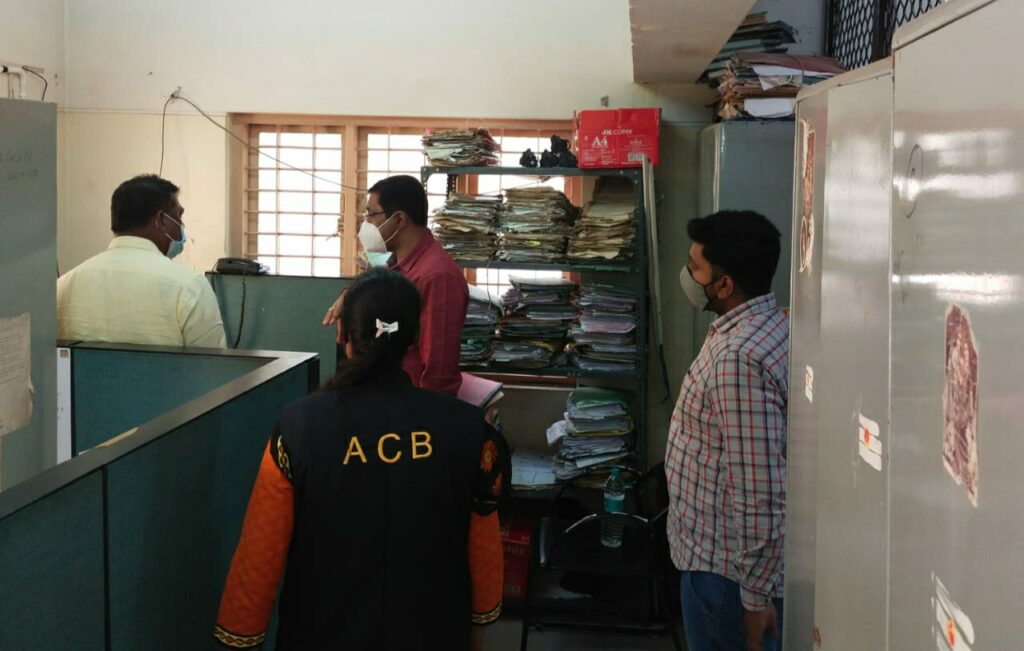 ಎಸಿಬಿ ಅಧಿಕಾರಿಗಳು ಬಿಬಿಎಂಪಿಯ ಕಚೇರಿಯಲ್ಲಿ ಪರಿಶೀಲನೆ ನಡೆಸುತ್ತಿರುವ ಸಂದರ್ಭದ ಸಾಂದರ್ಭಿಕ ಚಿತ್ರ