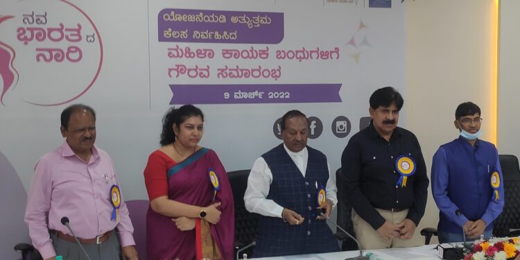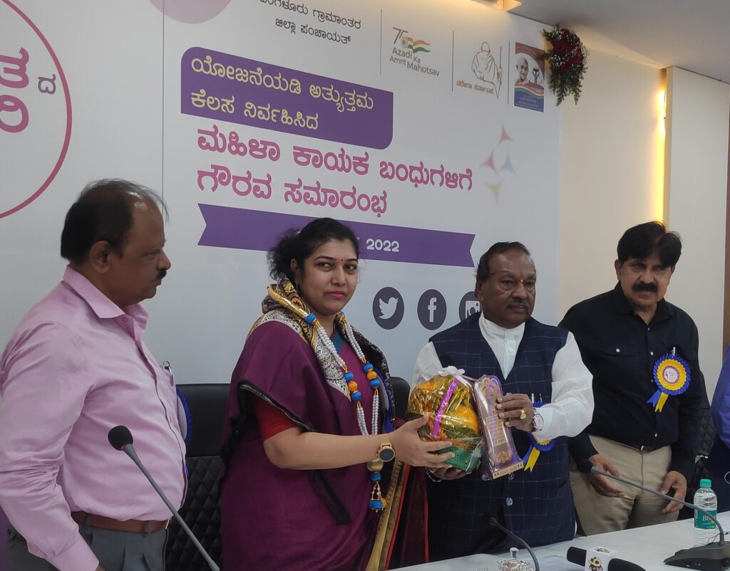 ಅತ್ಯುತ್ತಮ ಮಹಿಳಾ ಕಾಯಕ ಬಂಧುಗಳನ್ನು ಸನ್ಮಾನಿಸಿದ ಸಚಿವ ಕೆ.ಎಸ್.ಈಶ್ವರಪ್ಪ