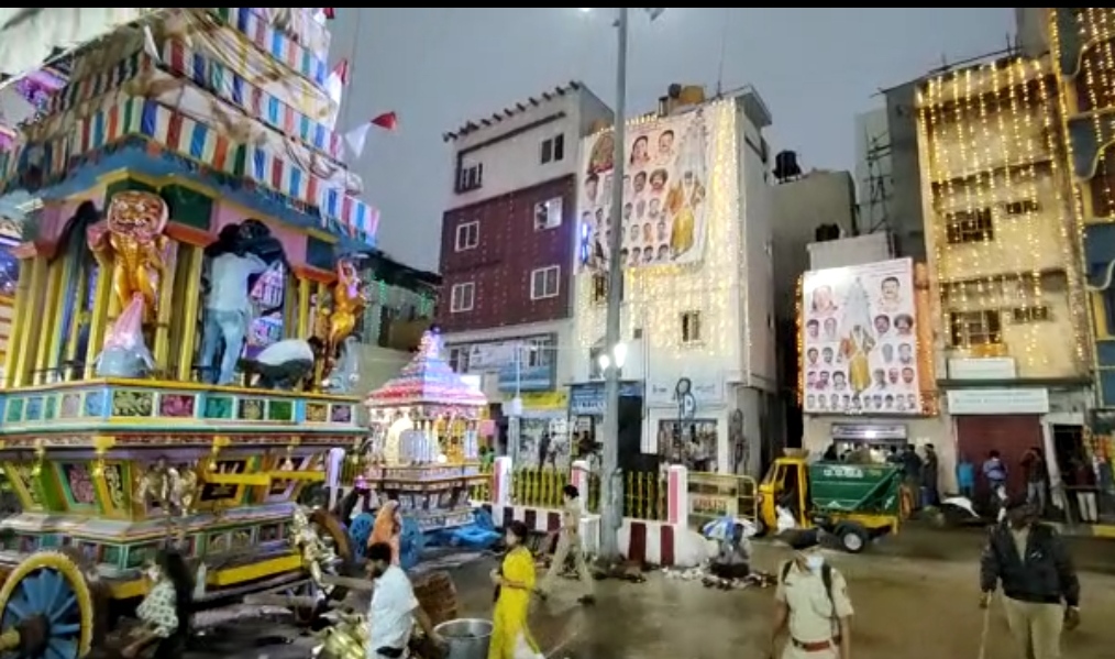 ಇಂದು ರಾತ್ರಿ 12.30ಕ್ಕೆ ಶ್ರೀ ಧರ್ಮರಾಯ ಸ್ವಾಮಿ ರಥೋತ್ಸವ ಹಾಗೂ ದ್ರೌಪದಿ ದೇವಿಯ ಕರಗ ಶಕ್ತ್ಯೋತ್ಸವಕ್ಕೆ ಚಾಲನೆ ದೊರೆಯಲಿದೆ. ರಾತ್ರಿ 8 ಗಂಟೆಯಿಂದ ಮಳೆಯು ಕೊಂಚ ಕಡಿಮೆಯಾದ ಮಧ್ಯೆಯೇ ವಿವಿಧ ಪೂಜೆ ಕಾರ್ಯಕ್ರಮ ಆರಂಭವಾಯಿತು. ಆದರೂ ಮಳೆ ಸಂಪೂರ್ಣವಾಗಿ ನಿಂತಿರಲಿಲ್ಲ.