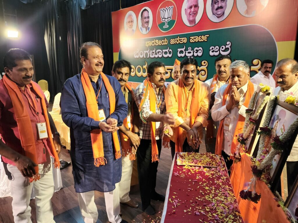 ವಸತಿ ಸಚಿವರಾದ ವಿ.ಸೋಮಣ್ಣ, ಬೆಂಗಳೂರು ದಕ್ಷಿಣ ಜಿಲ್ಲೆ ಬಿಜೆಪಿ ಅಧ್ಯಕ್ಷರಾದ ಎನ್.ಆರ್. ರಮೇಶ್ ರವರು, ಶಾಸಕರುಗಳಾದ ರವಿಸುಬ್ರಮಣ್ಯ, ಉದಯಗುರಡಾಚಾರ್ ಮತ್ತಿತರರು ಭಾರತಮಾತೆ, ಪಂಡಿತ್ ದೀನ್ ದಯಾಳ್ ಉಪಾಧ್ಯಾಯ, ಜಗನ್ನಾಥ ರಾವ್ ಜೋಷಿರವರ ಭಾವಚಿತ್ರಕ್ಕೆ ಪುಷ್ಪನಮನ ಸಲ್ಲಿಸಿ ಕಾರ್ಯಕಾರಿಣಿಗೆ ಚಾಲನೆ ನೀಡಿದರು.