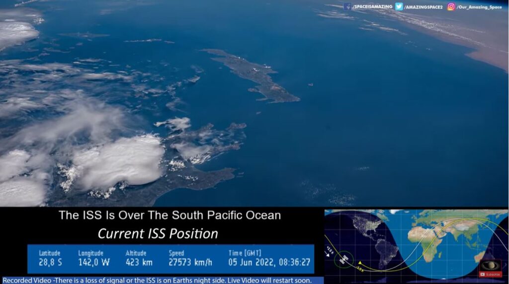 ಯೂಟ್ಯೂಬ್ ನಲ್ಲಿ ಕಾಣಸಿಗುವ ಲೈವ್ ಸ್ಟ್ರೀಮಿಂಗ್ ವಿಡಿಯೋದ ಡ್ಯಾಷ್ ಬೋರ್ಡ್ ಭಾಗದಲ್ಲಿ ನಿಮಗೆ ಪ್ರಸ್ತುತ ಐಸ್ಎಸ್ ಉಪಗ್ರಹ ಭೂಮಿಯ ಯಾವ ಭಾಗದಲ್ಲಿದೆ ಎಂಬುದನ್ನು ರಿಯಲ್ ಟೈಮ್ ಆಧಾರದಲ್ಲಿ ಅಕ್ಷಾಂಶ ಮತ್ತು ರೇಖಾಂಶದೊಂದಿಗೆ ಅಂತರಾಷ್ಟ್ರೀಯ ಸಮಯದೊಂದಿಗೆ ತಿಳಿಸುತ್ತಿರುತ್ತದೆ. ಈ ವಿಡಿಯೋದ ಕೆಳ ಭಾಗದಲ್ಲಿ ಹಳದಿ ಬಣ್ಣದ ಗೆರೆಯು ಉಪಗ್ರಹ 90 ನಿಮಿಷಗಳ ಹಿಂದೆ ಸಂಚರಿಸಿದ ಮಾರ್ಗ ಹಾಗೂ ಬಿಳಿ ರೇಖೆಯು ಮುಂದೆ 90 ನಿಮಿಷಗಳ ಅವಧಿಯಲ್ಲಿ ಸಂಚರಿಸುವ ಪಥವನ್ನು ಸೂಚಿಸುತ್ತೆ. ಅಲ್ಲದೆ ಸದ್ಯ ಉಪಗ್ರಹವು ಯಾವ ದೇಶದ ಮೇಲಿದೆ? ಯಾವ ವೇಗದಲ್ಲಿ ಈ ಸ್ಪೇಸ್ ಕ್ರಾಫ್ಟ್ ಚಲಿಸುತ್ತಿದೆ? ನೀವು ನೋಡುತ್ತಿರುವುದು ಲೈವ್ ದೃಶ್ಯವೇ? (Red Box- Live Now) ಅಥವಾ ಆಫ್ ಲೈನ್ ದೃಶ್ಯವೇ? (Blue box – Offline) ಎಂಬುದನ್ನು ಈ ವಿಡಿಯೋ ಸ್ಟ್ರೀಮಿಂಗ್ ನಲ್ಲಿ ಸೂಚಿಸುತ್ತದೆ.