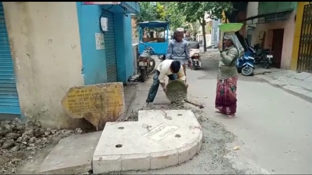 ರಾಜರಾಜೇಶ್ವರಿ ನಗರ ವಿಧಾನಸಭಾ ಕ್ಷೇತ್ರದಲ್ಲಿ ಮೋರಿ ಮೇಲೆ ಸ್ಲಾಬ್ ಅಳವಡಿಕೆ ಕಾಮಗಾರಿ ನಡೆಯುತ್ತಿರುವ ಚಿತ್ರ