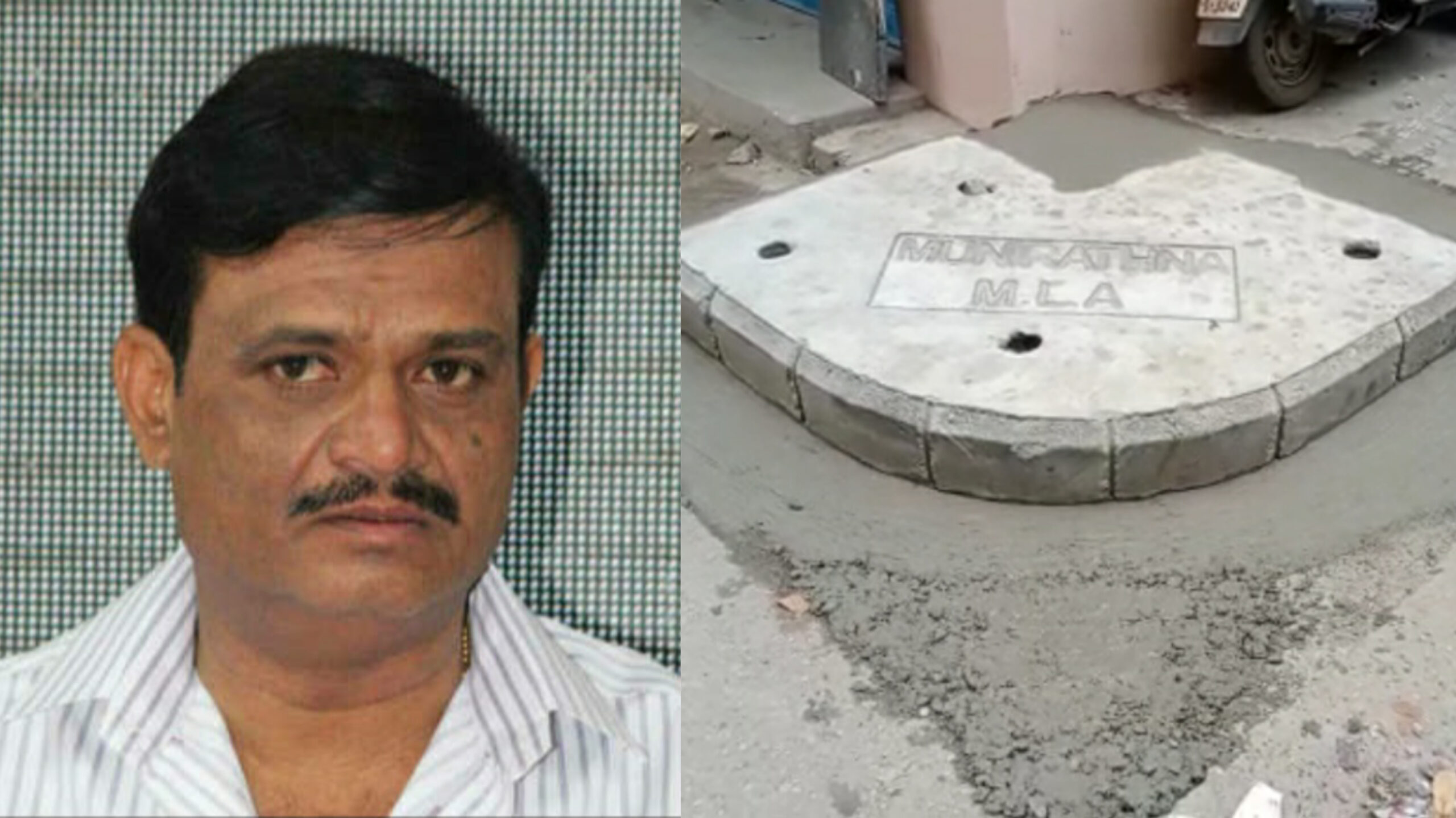 ಶಾಸಕ ಮುನಿರತ್ನ ಅವರ ಹೆಸರು ಇರುವ ಚರಂಡಿ ಮೇಲಿನ ಸ್ಲಾಬ್ ಚಿತ್ರ