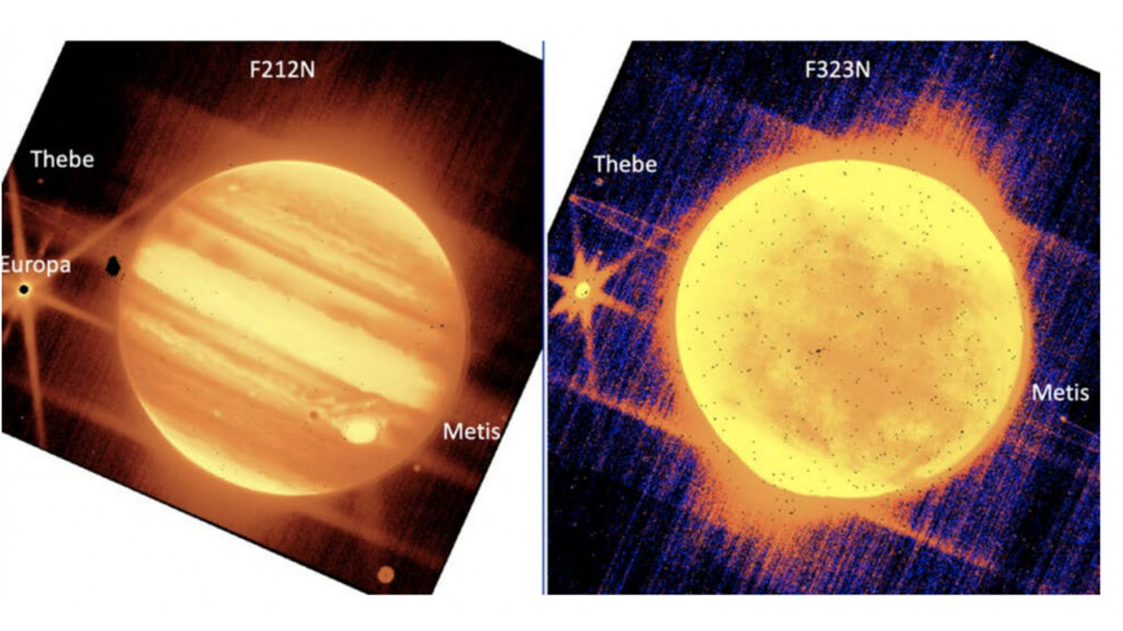 ಜ್ಯುಪಿಟರ್ ನ ಚಿತ್ರಗಳನ್ನು ಜೇಮ್ಸ್ ವೆಬ್ ಸ್ಪೇಸ್ ದೂರದರ್ಶಕವು ನಿರ್ ಕ್ಯಾಮ್ ಮೂಲಕ F212N ಫಿಲ್ಟರ್ ಬಳಸಿ 11 ನಿಮಿಷಗಳ ಗುರುವಿನ ಫೊಟೊಗಳನ್ನು ತೆಗೆದಿದೆ. ಈ ದೊಡ್ಡ ಟೆಲಿಸ್ಕೋಪ್ ನಲ್ಲಿನ ಕ್ಯಾಮರಾದಲ್ಲಿ ಬಳಸಿರುವ ಫಿಲ್ಟರ್ ಗಳು ಜಲಜನಕದಲ್ಲಿನ ಪರಮಾಣುಗಳ ಅಧ್ಯಯನ ಮಾಡಲು ವಿಜ್ಞಾನಿಗಳಿಗೆ ಸಹಾಯಕವಾಗಲಿದೆ.