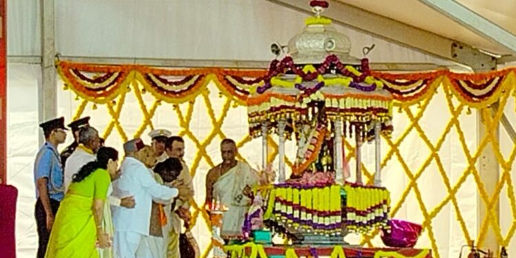 ಸೋಮವಾರ ಬೆಳಗ್ಗೆ 9.45ರಿಂದ 10.05ರೊಳಗೆ ಸಲ್ಲುವ ಶುಭ ವೃಶ್ಚಿಕ ಲಗ್ನದಲ್ಲಿ ರಾಷ್ಟ್ರಪತಿ ದ್ರೌಪದಿ ಮುರ್ಮು ಅವರು ಚಾಲನೆ ನೀಡುವ ಮೂಲಕ ನವದಿನಗಳ ದಸರಾ ಸಡಗರಕ್ಕೆ ಇಂಬು ನೀಡಿದಂತಾಗಿದೆ.