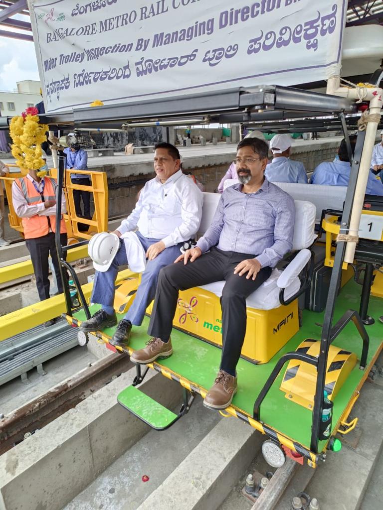 ಇದೇ ವೇಳೆ ಟ್ರ್ಯಾಕ್ ಮತ್ತು ಮೂರನೇ ಮೋಟಾರ್ ಟ್ರಾಲಿ ತಪಾಸಣೆ ನಡೆಸಿ ಮಾತನಾಡಿ, ಮೆಟ್ರೋ ಎಂಡಿ ಅಂಜುಮ್ ಪರ್ವೇಜ್, ವೈಟ್ ಫೀಲ್ಡ್ ಸೇರಿದಂತೆ ಎರಡನೇ ಹಂತದ ಕಾಮಗಾರಿಗಳ ಬಗ್ಗೆ ತೃಪ್ತಿ ವ್ಯಕ್ತಪಡಿಸಿದರು. 2023 ರ ಫೆಬ್ರವರಿ ಮೊದಲ ವಾರದಲ್ಲಿ ರೈಲು ಸುರಕ್ಷತೆಯ ಆಯುಕ್ತರನ್ನು ಆಹ್ವಾನಿಸಲು, ಜನವರಿ ಅಂತ್ಯದ ವೇಳೆಗೆ ಕಾಮಗಾರಿಗಳನ್ನು ಪೂರ್ಣಗೊಳಿಸಲು ಹೆಚ್ಚಿನ ವೇಗದ ಅಗತ್ಯವಿದೆ. ಈ ಬಗ್ಗೆ ಕ್ರಮ ಕೈಗೊಳ್ಳಿ ಎಂದ ಅಧಿಕಾರಿಗಳಿಗೆ ತಾಕೀತು ಮಾಡಿದರು.