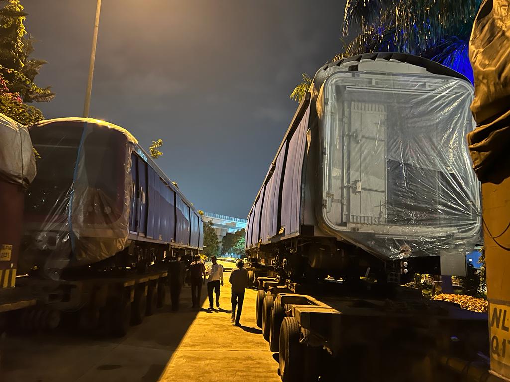 ಭೈಯ್ಯಪ್ಪನಹಳ್ಳಿ ಯಲ್ಲಿ ಮೆಟ್ರೋ ಬೋಗಿಗಳನ್ನು ವೈಟ್ ಫೀಲ್ಡ್ ಡಿಪೋಗೆ ಗುರುವಾರ ರಾತ್ರಿ ಟ್ರಕ್ ಗಳಲ್ಲಿ ಜೋಡಿಸಿ ಸಾಗಿಸಲಾಗುತ್ತಿದೆ. ಶುಕ್ರವಾರ ಬೆಳಗ್ಗೆ 9.30ಕ್ಕೆ ಆ ಬೋಗಿಗಳನ್ನು ಟ್ರಕ್ ನಿಂದ ಇಳಿಸಲಾಗುತ್ತದೆ. ಅ.25ರಿಂದ ಭೈಯ್ಯಪ್ಪನಹಳ್ಳಿಯಿಂದ ವೈಟ್ ಫೀಲ್ಡ್ ನಡುವಿನ 15.5 ಕಿ.ಮೀ ಮಾರ್ಗದ ರೈಲು ಪರೀಕ್ಷೆ ಆರಂಭವಾಗಲಿದೆ ಎಂದು ಅವರು ಹೇಳಿದ್ದಾರೆ.