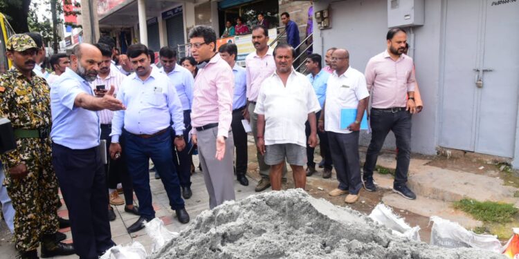 ಪಾದಚಾರಿ ಮಾರ್ಗವನ್ನು ಪರಿಶೀಲಿಸುತ್ತಿರುವ ಮುಖ್ಯ ಆಯುಕ್ತ ತುಷಾರ್ ಗಿರಿನಾಥ್