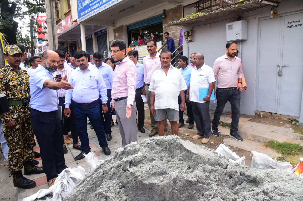 ಮುಖ್ಯ ಆಯುಕ್ತ ತುಷಾರ್ ಗಿರಿನಾಥ್ ಅಧಿಕಾರಿಗಳ ಜೊತೆಗೆ ಸುಮಾರು 6 ಕಿ.ಮೀ ರಸ್ತೆಯನ್ನು ಕಾಲ್ನಡಿಗೆಯ ಮೂಲಕ ವಾಟಾಳ್ ನಾಗರಾಜ್ ರಸ್ತೆ(ಸುಜಾತ ಟಾಕೀಸ್ ಬಳಿಯಿಂದ), ಡಾ. ರಾಜ್ ಕುಮಾರ್ ರಸ್ತೆ, ರಾಜಾಜಿನಗರ 6ನೇ ಬ್ಲಾಕ್ ವೃತ್ತ, ಮಾಗಡಿ ಜಂಕ್ಷನ್ ನಿಂದ ವೆಸ್ಟ್ ಆಫ್ ಕಾರ್ಡ್ ರಸ್ತೆ(ಟೋಲ್ ಗೇಡ್ ಕಡೆಗೆ), ಟೋಲ್ ಗೇಟ್ ಜಂಕ್ಷನ್, ಜೈ ಮುನಿರಾವ್ ವೃತ್ತ ಹಾಗೂ ಹೌಸಿಂಗ್ ಬೋರ್ಡ್ ಜಂಕ್ಷನ್ ವರೆಗೆ ಪರಿಶೀಲನೆ ನಡೆಸಿದರು.