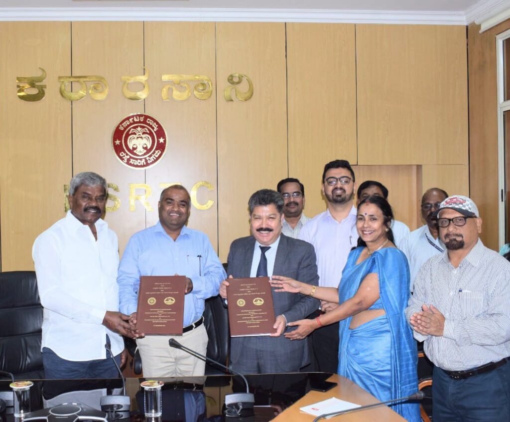 ಇಂದು ನಿಗಮದ ಕೇಂದ್ರ ಕಚೇರಿಯಲ್ಲಿ ಶಾಸಕರು ಹಾಗೂ ಅಧ್ಯಕ್ಷರಾದ ಎಂ. ಚಂದ್ರಪ್ಪರವರ ಸಮ್ಮುಖದಲ್ಲಿ ಕೆಎಸ್ ಆರ್ ಟಿ ಸಿ ವ್ಯವಸ್ಥಾಪಕ ನಿರ್ದೇಶಕರಾದ ವಿ.ಅನ್ಬುಕುಮಾರ್ ಹಾಗೂ ಯುನೈಟೆಡ್ ಇಂಡಿಯಾ ಇನ್ಸೂರೆನ್ಸ್ ಕಂಪನಿ ಪ್ರಧಾನ ವ್ಯವಸ್ಥಾಪಕರಾದ ಒಡಂಬಡಿಕೆಗೆ ಅಂಗ್ರೂಪ್ ಸೋನಂ ಸಹಿ ಹಾಕಿದರು.