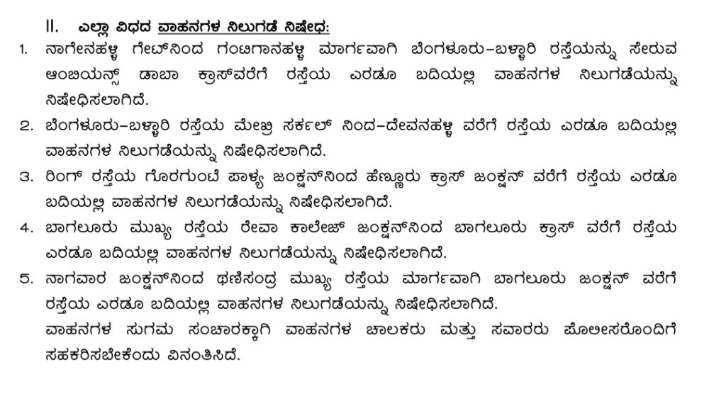 ಸಂಚಾರ ಬದಲಾವಣೆಯ ಮಾಹಿತಿ ಈ ಕೆಳಕಂಡಂತಿದೆ :