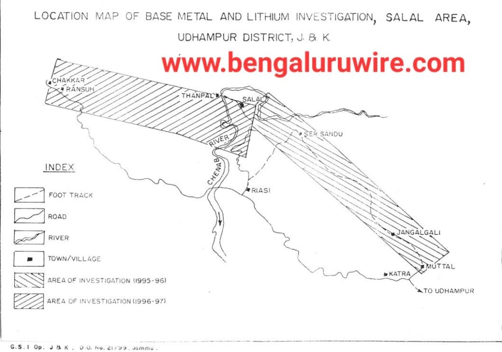 “1997ರಲ್ಲಿ ಜಿಎಸ್ಐ ಅಧಿಕಾರಿಗಳು ಈ ಪ್ರದೇಶದಲ್ಲಿ ವೈಜ್ಞಾನಿಕ ಸರ್ವೇಕ್ಷಣಾ ಅಧ್ಯಯನ ಕೈಗೊಂಡಾಗ ಲೀಥಿಯಮ್ ಖನಿಜವು ಬಾಕ್ಸೈಟ್ ನಿಕ್ಷೇಪದಲ್ಲಿ ಅಲ್ಯೂಮಿನಿಯಂ ಖನಿಜದೊಂದಿಗೆ ಲಭ್ಯವಾಗಿತ್ತು. ಈ ಕುರಿತಂತೆ ಆಗಿನ ಜಿಎಸ್ಐ ಅಧಿಕಾರಿಗಳು ಕೇಂದ್ರ ಸರ್ಕಾರಕ್ಕೆ ವರದಿ ಸಲ್ಲಿಸಿದ್ದರು. ಆಗ ಲೀಥಿಯಮ್ ಖನಿಜಕ್ಕೆ ಹೆಚ್ಚಿನ ಬೇಡಿಕೆಯಿರದ ಕಾರಣ ಈ ವರದಿಯು ಸರ್ಕಾರಿ ಕಪಾಟಿನಲ್ಲೇ ಭದ್ರವಾಗಿತ್ತು. ಯಾವಾಗ ವಿಶ್ವದಾದ್ಯಂತ ಎಲೆಕ್ಟ್ರಿಕ್ ವಾಹನಗಳ ಬಳಕೆಗಾಗಿ ಲೀಥಿಯಂ ಖನಿಜಕ್ಕೆ ಬೇಡಿಕೆ ಬಂದಿತ್ತೋ ಆಗ ಕೇಂದ್ರ ಸರ್ಕಾರದ ನಿರ್ದೇಶನದ ಮೇರೆಗೆ ಜಿಎಸ್ ಐನ ಅಧಿಕಾರಿಗಳು 2021-22ರಲ್ಲಿ ಸಲಾಲ್ ಗ್ರಾಮದಲ್ಲಿರುವ ವೈಷ್ಣವೋದೇವಿ ದೇಗುಲದ ತಪ್ಪಲಿನ ಸುತ್ತಮುತ್ತ ಅಧ್ಯಯನ ಜಿ-3 ಉನ್ನತ ಮಟ್ಟದ ಅಧ್ಯಯನ ಕೈಗೊಂಡಿತ್ತು” ಎಂದು ಜಿಎಸ್ಐ ಇಲಾಖೆ (ಬೆಂಗಳೂರು)ಯ ನಿವೃತ್ತ ಉಪ ಮಹಾನಿರ್ದೇಶಕರಾದ ಡಾ.ಪ್ರಕಾಶ್.ಎಚ್.ಎಸ್.ಎಮ್ ಬೆಂಗಳೂರು ವೈರ್ ಗೆ ಖಚಿತಪಡಿಸಿದ್ದಾರೆ.
