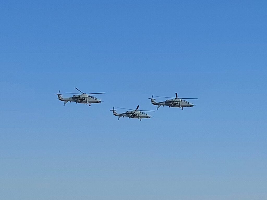 ಬಳಿಕ ಸ್ವದೇಶಿ ನಿರ್ಮಿತ 15 ಹೆಲಿಕಾಪ್ಟರ್ ಗಳು ಹಾರಾಟ ನಡೆಸಿ ಆತ್ಮನಿರ್ಭರ್ ಭಾರತ ಪರಿಕಲ್ಪನೆ ಹಿನ್ನಲೆಯಲ್ಲಿ ದೇಶದ ರಕ್ಷಣಾ ಸಾಮರ್ಥ್ಯವನ್ನು ವಿಶ್ವಕ್ಕೆ ಏರ್ ಶೋ ಉದ್ಘಾಟನಾ ಕಾರ್ಯಕ್ರಮದಲ್ಲಿ ತೋರಿಸಿದವು. ಎಚ್ ಎಎಲ್ (HAL) ನ ಸ್ವದೇಶಿ ನಿರ್ಮಿತ 7 ತರಬೇತಿ ವಿಮಾನಗಳಾದ ಎಲ್ ಸಿಎ ಎಸ್ ಪಿಟಿ ಏರ್ ಕ್ರಾಫ್ಟ್, ಎರಡು ಎಚ್ ಟಿಟಿ ವಿಮಾನಗಳು, ಎರಡು ಇಂಟರ್ ಮೀಡಿಯೇಟ್ ಜೆಟ್ ಟ್ರೈನರ್, ಹಾಕ್-ಐ, ಹಿಂದೂಸ್ಥಾನ್ 228 ಏರ್ ಕ್ರಾಫ್ಟ್ ಗುರುಕುಲ ಫಾರ್ಮೇಶನ್ ನಲ್ಲಿ ವೀಕ್ಷಕರ ಮುಂಭಾಗ 500 ಅಡಿ ಎತ್ತರದಲ್ಲಿ 12 ಗಂಟೆಯ ಆಕಾರದಲ್ಲಿ ಹಾರಿ ಮನರಂಜಿಸಿದವು.