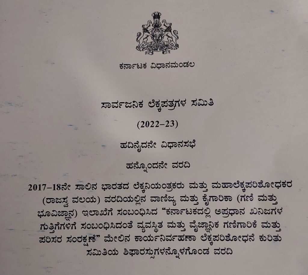 ಗಣಿ ಮತ್ತು ಭೂ ವಿಜ್ಞಾನ ಇಲಾಖೆಗೆ ಸಂಬಂಧಿಸಿದಂತೆ ಮಹಾಲೇಖಪಾಲಕರು 2017-18ನೇ ಸಾಲಿನ ವರದಿಯಲ್ಲಿ ಗಣಿ ಗುತ್ತಿಗೆ ಕುರಿತು ಉಲ್ಲೇಖಿಸಿದ್ದ ಅಂಶಗಳ ಬಗ್ಗೆ 2022-23ನೇ ಸಾಲಿನ ವಿಧಾನಮಂಡಲದ ಸಾರ್ವಜನಿಕ ಲೆಕ್ಕಪತ್ರಗಳ ಸಮಿತಿ (Public Accounts Committee – PAC) ಸರ್ಕಾರಕ್ಕೆ ಮಂಡಿಸಿರುವ ವರದಿಯಲ್ಲಿ ಈ ಆತಂಕಕಾರಿ ವಿಷಯವನ್ನು ಬಹಿರಂಗಪಡಿಸಿದೆ.