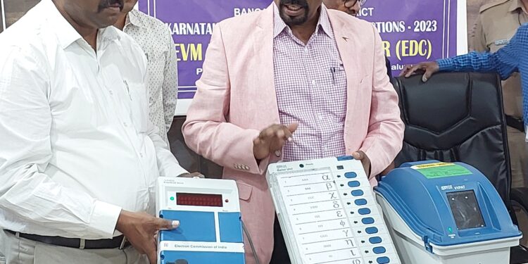 ಸಾರ್ವತ್ರಿಕ ಚುನಾವಣಾ ವಿಧಾನಸಭಾ ಚುನಾವಣೆ 2023ರ ಹಿನ್ನಲೆಯಲ್ಲಿ ನಗರ ಜಿಲ್ಲಾಧಿಕಾರಿ ಕಚೇರಿಯಲ್ಲಿ ಶನಿವಾರ, ವಿದ್ಯುನ್ಮಾನ ಮತಯಂತ್ರ (EVM)ಗಳ ಬಳಕೆ ಕುರಿತು ಮಾಧ್ಯಮದವರಿಗೆ ಅರಿವು ಮೂಡಿಸುವ ಕಾರ್ಯಕ್ರಮದಲ್ಲಿ ಮಾತನಾಡಿದರು.