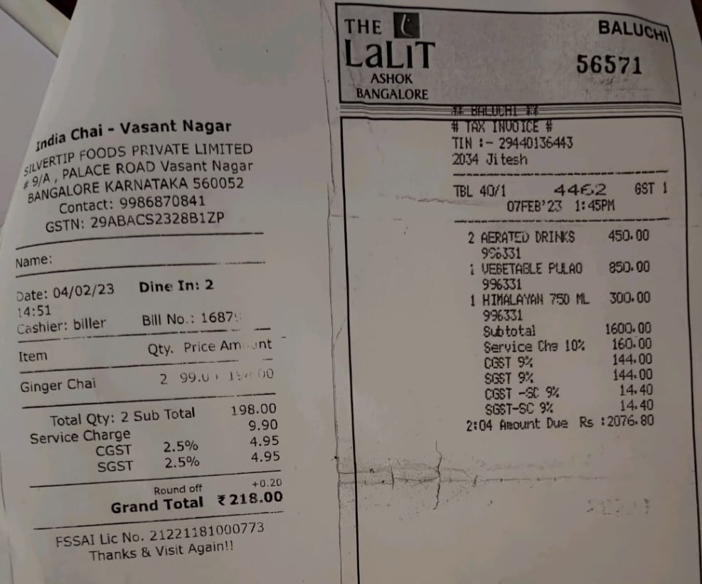 ಅದೇ ರೀತಿ “ಫೆ.4 ರಂದು ವಸಂತನಗರದಲ್ಲಿನ ‘ಇಂಡಿಯನ್ ಚಾಯ್’ ಹೋಟೆಲ್ ಚಹಾ ಖರೀದಿಸಿದ್ದು, ಈ ಹೋಟೆಲ್ ನವರು 218 ರೂ. ಬಿಲ್ ನೀಡಿ, ಸೇವಾ ಶುಲ್ಕವಾಗಿ 9.90 ರೂ. ಸಂಗ್ರಹಿಸಿದ್ದಾರೆ ಎಂದು ದೂರಿದ್ದಾರೆ. ಗ್ರಾಹಕರ ಹಿತಾಸಕ್ತಿಗೆ ವಿರುದ್ಧವಾಗಿ, ಕಾನೂನು ಬಾಹಿರವಾಗಿ ಗ್ರಾಹಕರಿಂದ ಹಣ ವಸೂಲಿ ಮಾಡುತ್ತಿರುವ ತಪ್ಪಿತಸ್ಥ ಹೋಟೆಲ್ ಹಾಗೂ ರೆಸ್ಟೋರೆಂಟ್ ಗಳ ವಿರುದ್ಧ ಕಾನೂನು ಕ್ರಮ ಕೈಗೊಂಡು, ನಿಯಮ ಮೀರಿ ಸಂಗ್ರಹಿಸಿದ ಸೇವಾ ಶುಲ್ಕ ಹಾಗೂ ಗರಿಷ್ಠ ಮಾರಾಟ ದರಕ್ಕಿಂತ ಹೆಚ್ಚಾಗಿ ಸಂಗ್ರಹಿಸಿದ ಮೊತ್ತವನ್ನು ಸರ್ಕಾರ ಮುಟ್ಟುಗೋಲು ಹಾಕಿಕೊಳ್ಳಬೇಕು” ಎಂದು ಸಿಟಿಜನ್ ರೈಟ್ಸ್ ಫೌಂಡೇಷನ್ ಮುಖ್ಯ ಕಾರ್ಯದರ್ಶಿಗಳಿಗೆ ಬರೆದ ಪತ್ರದಲ್ಲಿ ತಿಳಿಸಿದೆ.