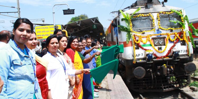 ಮಹಿಳಾ ಪಾಯಿಂಟ್ಸ್ ಮ್ಯಾನ್ ಜೆ. ಫಾತಿಮಾ, ಸರಸ್ವತಿ ಮತ್ತು ಪ್ರತಿಮಾ ಶರ್ಮಾ, ಸ್ಟೇಷನ್ ಮಾಸ್ಟರ್ ರೈಲಿಗೆ ಚಾಲನೆ ನೀಡಿದರು. ಹೆಚ್ಚುವರಿ ವಿಭಾಗೀಯ ರೈಲ್ವೆ ವ್ಯವಸ್ಥಾಪಕಿ (ನಿರ್ವಹಣೆ) ಕುಸುಮಾ ಹರಿಪ್ರಸಾದ್, ಹಿರಿಯ ವಿಭಾಗೀಯ ಸಿಬ್ಬಂದಿ ಅಧಿಕಾರಿ ಉಮಾ ಶರ್ಮಾ, ಹಿರಿಯ ವಿಭಾಗೀಯ ಎಲೆಕ್ಟ್ರಿಕಲ್ ಇಂಜಿನಿಯರ್ ಪೂಜಾ ಸೇರಿದಂತೆ ಮತ್ತಿತರರು ಈ ಸಂದರ್ಭದಲ್ಲಿ ಉಪಸ್ಥಿತರಿದ್ದು ವಿಭಾಗದ ಎಲ್ಲ ಮಹಿಳಾ ಸಿಬ್ಬಂದಿಗೆ ಶುಭಾಶಯ ಕೋರಿದರು.