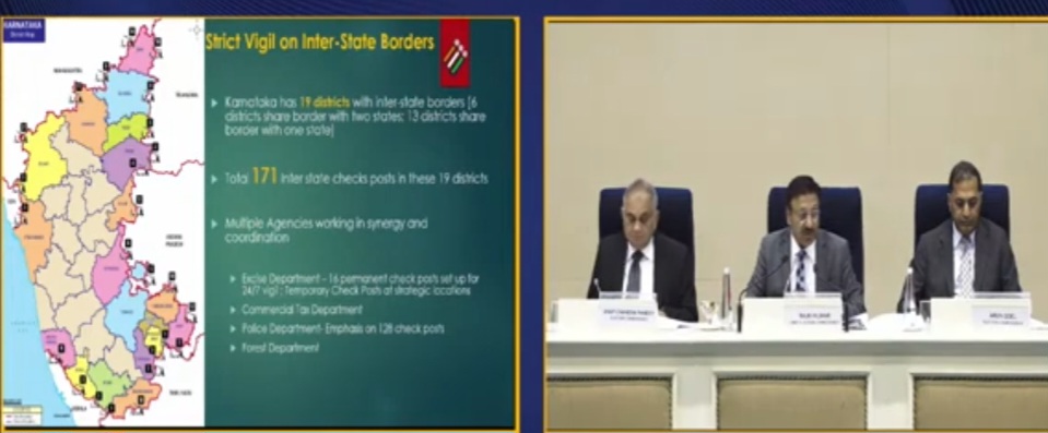 ಚುನಾವಣಾ ಅಕಮ ತಡೆಗೆ ಜೀರೋ ಟಾಲರೆನ್ಸ್ ಇರಲಿದ್ದು, ಇದಕ್ಕಾಗಿ 2,400 ತಂಡಗಳ ರಚನೆ ಮಾಡಲಿದ್ದು, ಎಲ್ಲ ತನಿಖಾ ಸಂಸ್ಥೆಗಳ ಬಳಕೆಯಾಗಲಿದೆ. ಚುನಾವಣಾ ಅಕ್ರಮಕ್ಕೆ ನಿಷ್ಠುರ ಕಡಿವಾಣ ಹಾಕಲಿದ. ವಿಮಾನನಿಲ್ದಾಣ ಸಹಿತ ಎಲ್ಲೆಡೆ ವ್ಯಾಪಕ ಮತ್ತು ತೀವ್ರ ನಿಗಾಕ್ಕೆ ನಿರ್ದೇಶನ ನೀಡಲಾಗಿದೆ. 19 ಜಿಲ್ಲೆಗಳಲ್ಲಿ 171 ಅಂತಾರಾಜ್ಯ ಚೆಕ್ ಪೋಸ್ಟ್ ಗಳನ್ನು ಹಾಕಲಾಗುತ್ತದೆ. ದೊಡ್ಡ ಮೊತ್ತದ ಬ್ಯಾಂಕ್ ವ್ಯವಹಾರಗಳ ಮೇಲೆ ಆಯೋಗವು ಹದ್ದಿನ ಕಣ್ಣಿಡಲಿದೆ.