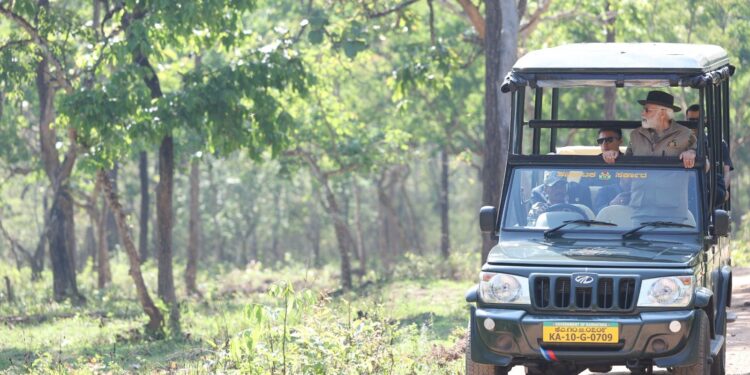 ಚಾಮರಾಜನಗರ, ಏ.9 www.bengaluruwire.com : ಪ್ರಧಾನಿ‌ ನರೇಂದ್ರ ಮೋದಿ ಭಾನುವಾರ ಬಂಡೀಪುರ ಹುಲಿ ಸಂರಕ್ಷಿತ ಪ್ರದೇಶಕ್ಕೆ ಭೇಟಿ ಕೊಟ್ಟು ಒಂದೂವರೆ ತಾಸು ಸುಮಾರು 20 ಕಿ.ಮೀ ಕಾಡಿನಲ್ಲಿ ಸಫಾರಿ ನಡೆಸಿದರು.
