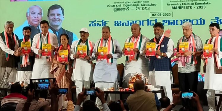 Karnataka Congress Manifesto | ಸರ್ವ ಜನಾಂಗದ ಶಾಂತಿಯ ತೋಟ : ಗ್ಯಾರಂಟಿ ಘೋಷಣೆ ಜೊತೆಗೆ ಹಲವು ಭರವಸೆಗಳ ಕಾಂಗ್ರೆಸ್ ಪ್ರಣಾಳಿಕೆ ಬಿಡುಗಡೆ