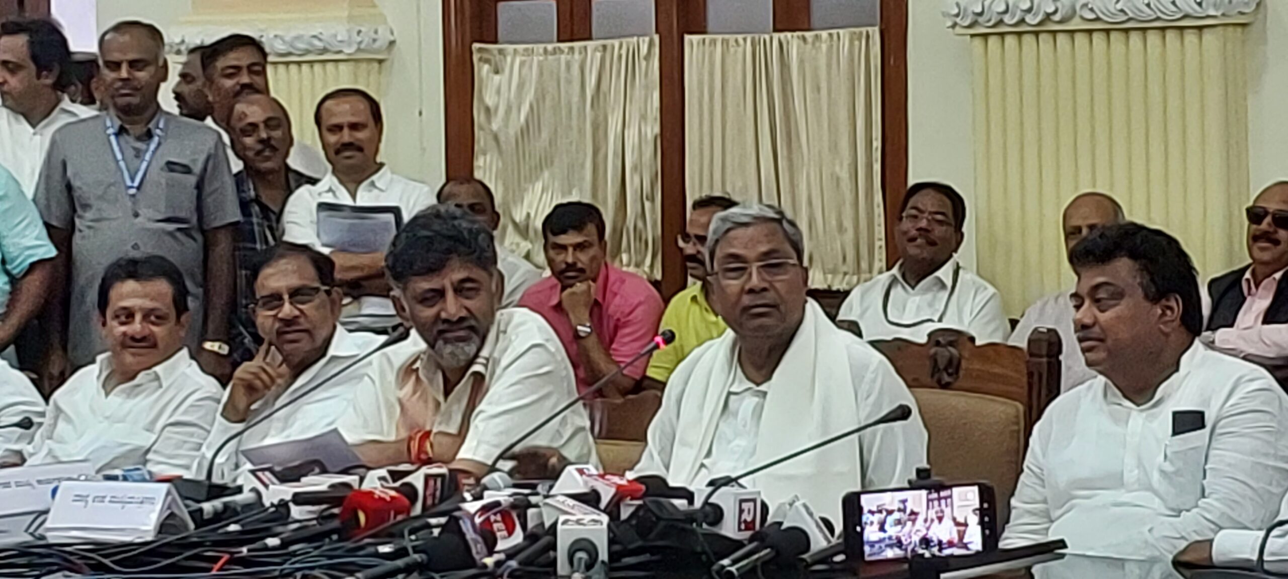 ಎರಡನೇ ಬಾರಿಗೆ ಸಿಎಂ ಆದ ಬಳಿಕ ಡಿಸಿಎಂ ಡಿಕೆ ಶಿವಕುಮಾರ್ ಹಾಗೂ ಸಚಿವ ಸಂಪುಟದ ಸಹದ್ಯೋಗಿಗಳ ಜೊತೆ ಜಂಟಿ ಪತ್ರಿಕಾಗೋಷ್ಠಿಯಲ್ಲಿ ಸಿದ್ದರಾಮಯ್ಯ ಮಾತಾನಾಡುತ್ತಾ, ಕಾಂಗ್ರೆಸ್ ಗೆ ಬಹುಮತ ನೀಡಿದ ನಾಡಿನ ಜನತೆಗೆ, ಮತದಾರರಿಗೆ ಧನ್ಯವಾದಗಳನ್ನು ಅರ್ಪಿಸುತ್ತೇನೆ. ರಾಷ್ಟ್ರದ ಮಾಜಿ ಮುಖ್ಯಮಂತ್ರಿಗಳು, ಕಾಂಗ್ರೆಸ್ ಅಧ್ಯಕ್ಷರು, ಮಾಜಿ ಅಧ್ಯಕ್ಷರು ಲೋಕಸಭಾ ಸದಸ್ಯರು, ರಾಜ್ಯಸಭೆ ಸದಸ್ಯರು, ಬಿಜೆಪಿಯೇತರ ಪಕ್ಷದ ಅಧ್ಯಕ್ಷರು, ನಾಯಕರು ಆಗಮಿಸಿ ಹೊಸ ಸರ್ಕಾರಕ್ಕೆ ಶುಭಕೋರಿದ್ದಾರೆ.