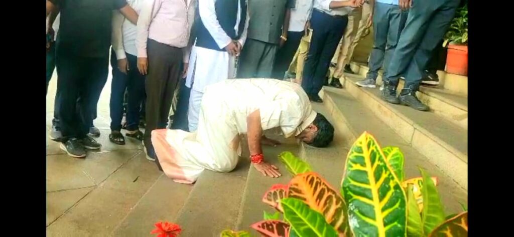 ಡಿಸಿಎಂ ಆದ ಬಳಿಕ ಮೊತ್ತ ಮೊದಲ ಬಾರಿಗೆ ವಿಧಾನಸೌಧದ ಮೆಟ್ಟಿಲು ಹತ್ತುವಾಗ ಡಿ.ಕೆ.ಶಿವಕುಮಾರ್, ಸತ್ ಸಂಪ್ರದಾಯದಂತೆ ಮಂಡಿಯೂರಿ, ವಿಧಾನಸೌಧದ ಮೆಟ್ಟಿಲುಗಳಿಗೆ ತಲೆಬಾಗಿ ನಮಸ್ಕರಿಸಿ ಶಕ್ತಿಕೇಂದ್ರದ ಒಳಗೆ ಪ್ರವೇಶಿಸಿದರು.