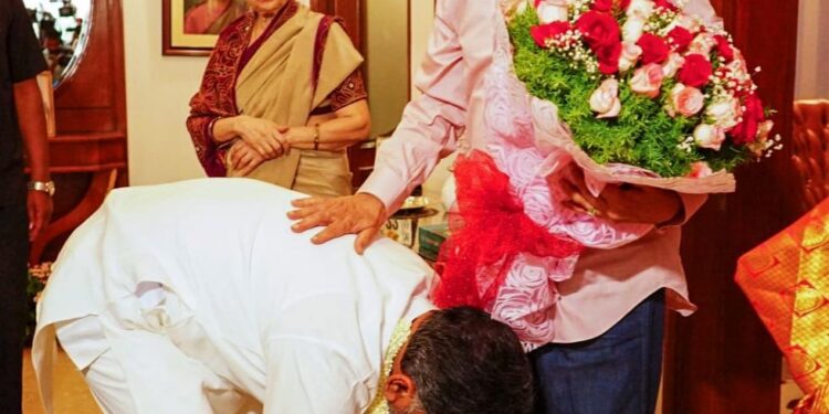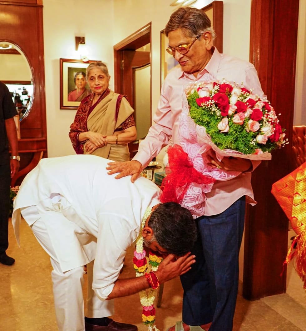 ಕೆಪಿಸಿಸಿ ಅಧ್ಯಕ್ಷ ಹಾಗೂ ಉಪ ಮುಖ್ಯಮಂತ್ರಿ ಡಿ.ಕೆ ಶಿವಕುಮಾರ್ ಅವರು ತಮ್ಮ ರಾಜಕೀಯ ಗುರು ಮಾಜಿ ಸಿಎಂ ಎಸ್.ಎಂ ಕೃಷ್ಣ ಅವರ ಸದಾಶಿವನಗರದ ನಿವಾಸಕ್ಕೆ ಸೋಮವಾರ ಬೆಳಗ್ಗೆ ಭೇಟಿ ನೀಡಿ ಅವರ ಆಶೀರ್ವಾದ ಪಡೆದರು. ಇದೇ ಸಂದರ್ಭದಲ್ಲಿ ಎಸ್.ಎಂ.ಕೃಷ್ಣ ಅವರು, ಬ.ನ.ಸುಂದರರಾವ್ ಅವರ ಬೆಂಗಳೂರಿನ ಇತಿಹಾಸ ಪುಸ್ತಕವನ್ನು ಕಾಣಿಕೆಯಾಗಿ ನೀಡಿದರು.