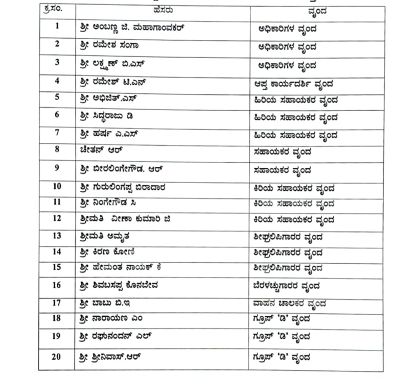 ಈ ಕೆಳಕಂಡ ಕರ್ನಾಟಕ ರಾಜ್ಯ ಸರ್ಕಾರಿ ನೌಕರರ ಮಾರ್ಗದರ್ಶನದ ತಂಡದವರು ಚುನಾಯಿತ ಕಾರ್ಯಕಾರಿ ಮಂಡಳಿ ಸದಸ್ಯರಾಗಿ ಗೆಲುವು ಸಾಧಿಸಿದ್ದಾರೆ :