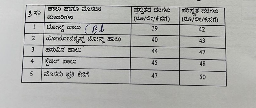 ಹೆಚ್ಚಾಗುತ್ತಿರುವ ಹಾಲು ಉತ್ಪಾದನಾ, ಹಾಲು ಸಂಸ್ಕರಣಾ ವೆಚ್ಚಗಳು ಮತ್ತು ರಾಜ್ಯದಲ್ಲಿ ಹೈನೋದ್ಯಮನ್ನು ಉತ್ತೇಜಿಸಿ ಪ್ರೋತ್ಸಾಹಿಸಲು ಮುಖ್ಯಮಂತ್ರಿ ಸಿದ್ದರಾಮಯ್ಯ ಆ.1 ರಿಂದ ‘ನಂದಿನಿ ಹಾಲಿನ ದರವನ್ನು ಪ್ರತಿ ಲೀಟರ್ ಗೆ 3 ರೂ. ಹಾಗೂ ಮೊಸರಿನ ದರ ಪ್ರತಿ ಕೆಜಿಗೆ ತಲಾ 3ರೂ. ನಂತೆ ಹೆಚ್ಚಳ ಮಾಡಲು ಸಮ್ಮತಿ ನೀಡಿರುತ್ತಾರೆ ಹಾಗೂ ಹೆಚ್ಚುವರಿ ಮಾಡಿರುವ ಮಾರಾಟ ದರ ರೈತರಿಗೆ ವರ್ಗಾಹಿಸಲಾಗುವುದು ಎಂದು ಕೆಎಂಎಫ್ ತಿಳಿಸಿದೆ.