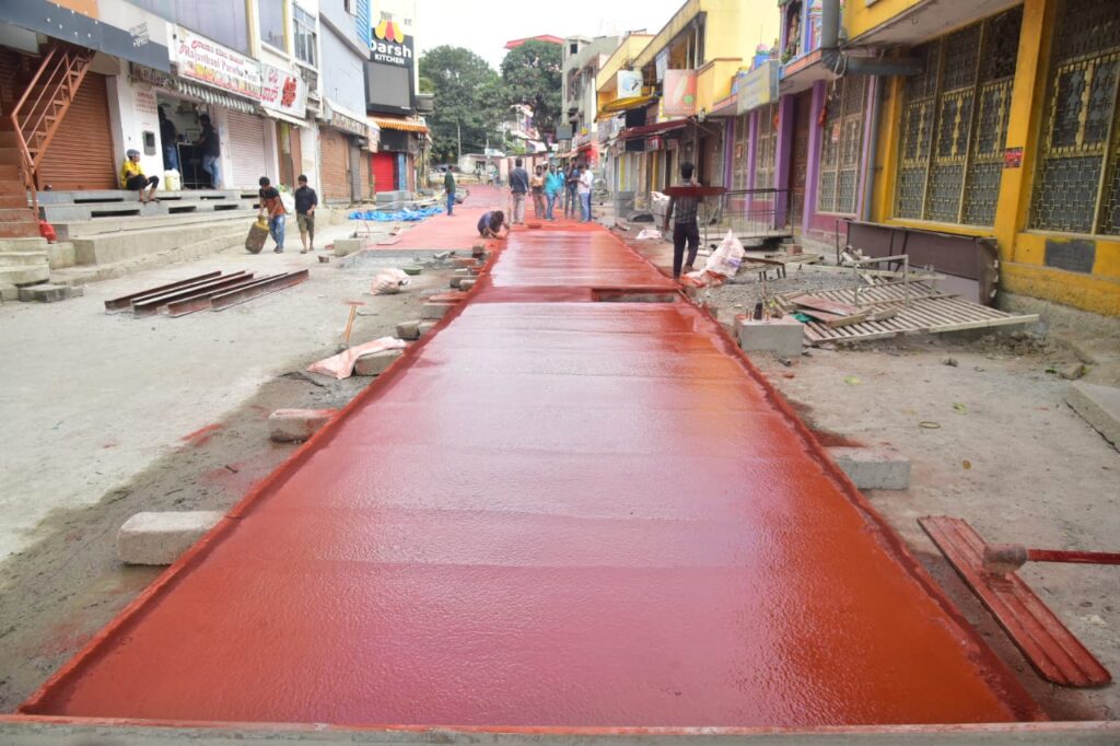 ಕಾಂಕ್ರೀಟ್ ರಸ್ತೆಗೆ ಕೆಂಗಂದು ಬಣ್ಣ ಅಳವಡಿಕೆ:
