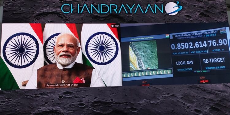 ಬೆಂಗಳೂರು, (ಇಸ್ರೋ ಪೀಣ್ಯಾ ಇಸ್ಟ್ರಾಕ್ ಕೇಂದ್ರ) ಆ.23 www.bengaluruwire.com : ಭಾರತ ಚಂದ್ರಯಾನ-3 ಮಹತ್ವದ ಯೋಜನೆಯಲ್ಲಿ ಯಶಸ್ಸು ಸಾಧಿಸಿದೆ. ಇಸ್ರೋ ವಿಶ್ವದ ಯಾವುದೇ ದೇಶ ಸಾಧಿಸದ ಸಾಧನೆಯನ್ನು ಭಾರತದ ಇಸ್ರೋ ವಿಜ್ಞಾನಿಗಳು ಚಂದ್ರನ ದಕ್ಷಿಣ ಧೃವದಲ್ಲಿ ಚಂದ್ರಯಾನ-3 ಲ್ಯಾಂಡರ್ ಅನ್ನು ಇಳಿಸಿ ಯಶಸ್ಸು ಸಾಧಿಸಿದ್ದಾರೆ ಎಂದು ಪ್ರಧಾನಿ ನರೇಂದ್ರ ಮೋದಿ ದಕ್ಷಿಣ ಆಫ್ರಿಕಾದಿಂದ ವಿಡಿಯೋ ಕಾನ್ಫರೆನ್ಸ್ ಮೂಲಕ ಕೊಂಡಾಡಿದ್ದಾರೆ.