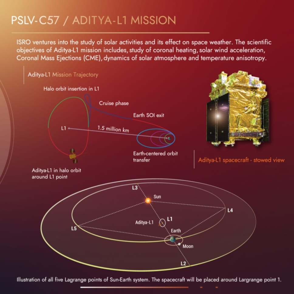 ಸಾವಿರಾರು ವರ್ಷಗಳಿಂದ ಸೂರ್ಯನಲ್ಲಿನ ನಿಗೂಢ ರಹಸ್ಯ ಮಾಹಿತಿಗಳನ್ನು ತಿಳಿದು ಕೊಳ್ಳಲು ಭಾರತ ಇದೇ ಮೊದಲ ಬಾರಿಗೆ ಸೂರ್ಯಾಧ್ಯಯನ ವೀಕ್ಷಣಾಲಯವನ್ನು PSLV-C57 ರಾಕೆಟ್ ಮೂಲಕ ಹಾರಿಬಡಿಲಿದೆ. ಸೂರ್ಯನ ವಾತಾವರಣದ ಅಧ್ಯಯನಕ್ಕಾಗಿ ಸಜ್ಜಾಗಿರುವ ಆದಿತ್ಯ ಎಲ್-1 ಎಂಬ ಮಹತ್ವಾಕಾಂಕ್ಷಿ ಯೋಜನೆಯಿಂದಾಗಿ ಸೂರ್ಯನನ್ನು ಇಪ್ಪತ್ತನಾಲ್ಕು ಗಂಟೆಯೂ ಹತ್ತಿರದಿಂದ ನೋಡುವುದು, ಸೂರ್ಯನ ಕಿರೀಟ (ಕೊರೋನಾ ಭಾಗ), ಅಯಸ್ಕಾಂತೀಯ ಗುಣ, ರವಿಯಲ್ಲಿನ ಚಿಮ್ಮುವ ಜ್ವಾಲಾಬುಗ್ಗೆ, ಬೀಸಿ ಬರುವ ಸೌರಮಾರುತಗಳನ್ನು ವಿವಿಧ ತರಂಗಾಂತರಗಳಲ್ಲಿ ವಿವರವಾಗಿ ತಿಳಿದುಕೊಳ್ಳಲು ಸಾಧ್ಯವಾಗಲಿದೆ.