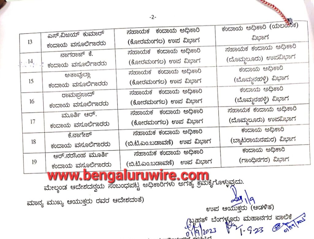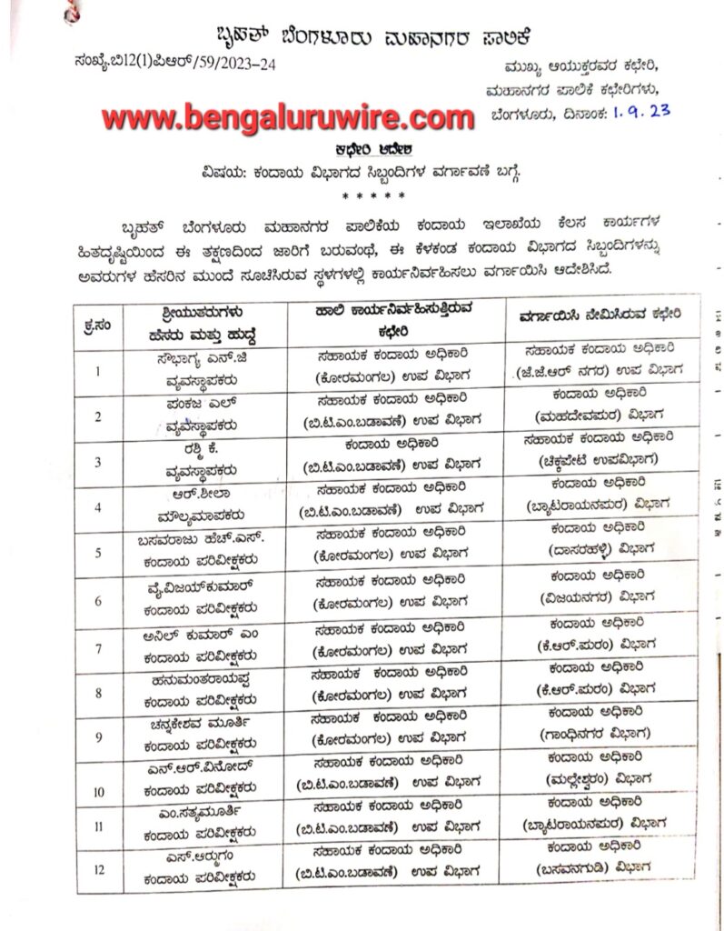 ಮೂವರು ವ್ಯವಸ್ಥಾಪಕರು, ಒರ್ವ ಮೌಲ್ಯಮಾಪಕರು, 8 ಕಂದಾಯ ಪರಿವೀಕ್ಷಕರು (Revenue Inspector), 7 ಕಂದಾಯ ವಸೂಲಿಗಾರರು (Tax Inspector) ರವರು ಬಿಟಿಎಂ ವಿಧಾನಸಭಾ ಕ್ಷೇತ್ರದ ವ್ಯಾಪ್ತಿಯಲ್ಲಿ ಕೆಲವರು ಹಲವು ವರ್ಷಗಳಿಂದ ಕಾರ್ಯನಿರ್ವಹಿಸುತ್ತಿದ್ದರೆ, ಕೆಲವರು ಇತ್ತೀಚೆಗಷ್ಟೆ ವರ್ಗವಾಗಿ ಅಲ್ಲಿಗೆ ಬಂದಿದ್ದರು. ಒಟ್ಟಾರೆ ಎಲ್ಲರನ್ನೂ ಒಮ್ಮೆಗೆ ವರ್ಗಾವಣೆ ಮಾಡಿರುವುದು ಹಲವು ಅನುಮಾನಗಳಿಗೂ ಕಾರಣವಾಗಿದೆ.