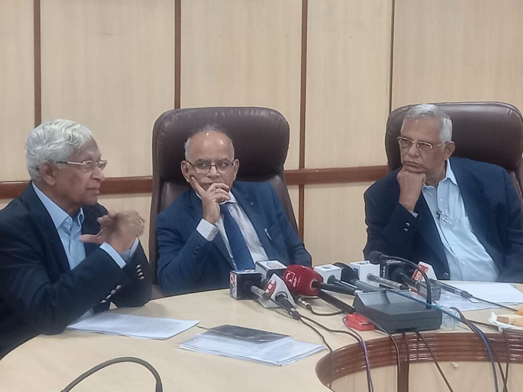 ನ್ಯಾ. ಚಂದ್ರಶೇಖರ್ ಸಮಿತಿ ನಡೆಸಿದ ಪತ್ರಿಕಾಗೋಷ್ಠಿಯಲ್ಲಿ ವಿಶ್ರಾಂತ ನ್ಯಾಯಮೂರ್ತಿಗಳಾದ ಎ.ವಿ.ಚಂದ್ರಶೇಖರ್, ಹಿಂದಿನ ಪೊಲೀಸ್ ಮಹಾ ನಿರ್ದೇಶಕರು ಮತ್ತು ಮಹಾ ಪರಿವೀಕ್ಷಕರಾದ ಎಸ್.ಟಿ. ರಮೇಶ್, ಬೆಂಗಳೂರು ಅಭಿವೃದ್ಧಿ ಪ್ರಾಧಿಕಾರದ ಹಿಂದಿನ ಆಯುಕ್ತರಾದ ಜಯಕರ್ ಜರೋಮ್ ಉಪಸ್ಥಿತರಿದ್ದರು.