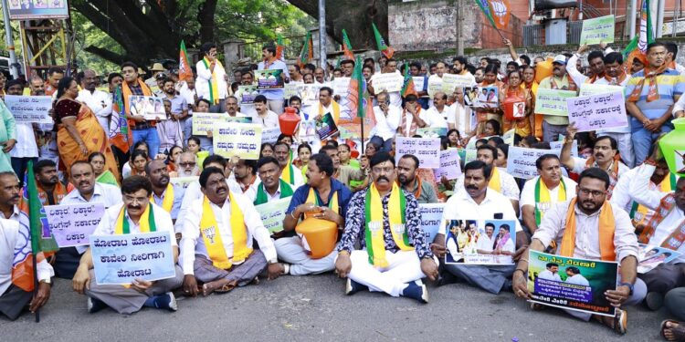 ಬೆಂಗಳೂರು, ಸೆ.23 www.bengaluruwire.com : ಡಿಎಂಕೆ ಸರಕಾರ ಮತ್ತು ಐಎನ್ಡಿಐಎ ಒಕ್ಕೂಟವನ್ನು ಮೆಚ್ಚಿಸುವ ಉದ್ದೇಶದಿಂದ ರಾಜ್ಯದ ಕಾಂಗ್ರೆಸ್ ಸರಕಾರವು ಕಾವೇರಿ ನೀರನ್ನು ತಮಿಳುನಾಡಿಗೆ ಬಿಡುಗಡೆ ಮಾಡುತ್ತಿದೆ. ಇದನ್ನು ತಕ್ಷಣವೇ ರಾಜ್ಯ ಸರ್ಕಾರ ನಿಲ್ಲಿಸಬೇಕು ಎಂದು ಬಿಜೆಪಿ ನಗದಲ್ಲಿಂದು ಬೃಹತ್ ಪ್ರತಿಭಟನೆ ನಡೆಸಿತು.