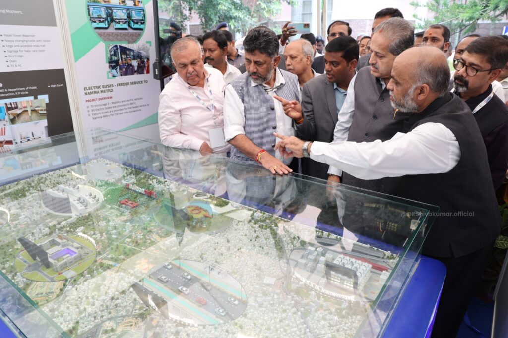 ಬೆಂಗಳೂರಿನ ಸ್ಥೂಲ ಚಿತ್ರಣದ ಪ್ರತಿಕೃತಿಯ ಬಗ್ಗೆ ನಗರಾಭಿವೃದ್ಧಿ ಹೆಚ್ಚುವರಿ ಪ್ರಧಾನ ಕಾರ್ಯದರ್ಶಿ ರಾಕೇಶ್ ಸಿಂಗ್ ಡಿಸಿಎಂ ಡಿ.ಕೆ.ಶಿವಕುಮಾರ್ ಗೆ ವಿವರಿಸುತ್ತಿರುವ ಚಿತ್ರ.