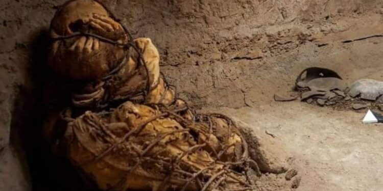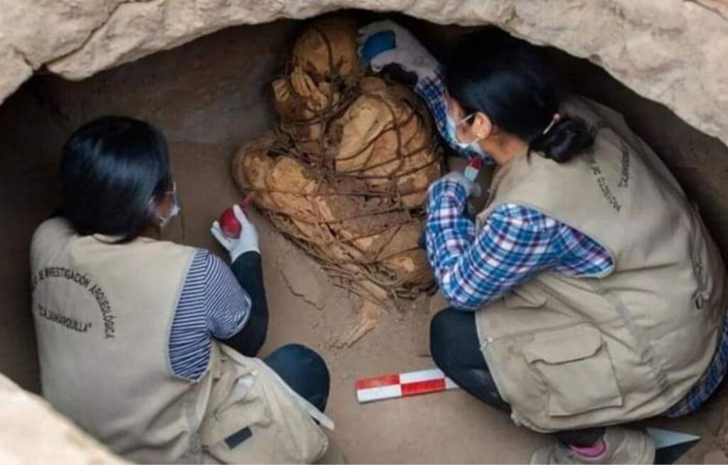 ಪೆರು ರಾಷ್ಟ್ರದ ರಾಜಧಾನಿ ಲಿಮಾದಲ್ಲಿ ನಿಗೂಢ ಮಮ್ಮಿಯೊಂದು ಭೂಮಿಯ ಆಳದಲ್ಲಿ ಪತ್ತೆಯಾಗಿದೆ.‌ ಈ ಮಮ್ಮಿಯನ್ನು ಸಂಪೂರ್ಣವಾಗಿ ದಾರದಲ್ಲಿ ಸುತ್ತಲಾಗಿದ್ದು, ಈ ಮೃತದೇಹವು ಕೈಯಿಂದ ತನ್ನ ಮುಖವನ್ನು ಮುಚ್ಚಿಕೊಂಡಿರುವ ಸ್ಥಿತಿಯಲ್ಲಿ ಪತ್ತೆಯಾಗಿದೆ.‌