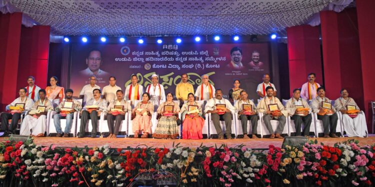 ಉಡುಪಿ ಜಿಲ್ಲಾ ಕನ್ನಡ ಸಾಹಿತ್ಯ ಪರಿಷತ್ ಅಧ್ಯಕ್ಷ ನೀಲಾವರ ಸುರೇಂದ್ರ ಅಡಿಗರ ನೇತೃತ್ವದಲ್ಲಿ ಕನ್ನಡ ಸಾಹಿತ್ಯ ಸಮ್ಮೇಳನ ನಡೆಯುತ್ತಿದೆ. ಡಿ.5ರಂದು ಮೊದಲ ದಿನ ವಿವಿಧ ಕ್ಷೇತ್ರಗಳಲ್ಲಿ ಗಣನೀಯ ಸಾಧನೆ ಮಾಡಿದ 12 ಗಣ್ಯ ವ್ಯಕ್ತಿಗಳು ಹಾಗೂ  5 ಸಂಸ್ಥೆಗಳಿಗೆ ಪ್ರಶಸ್ತಿ, ಪಾರಿತೋಷಕಗಳನ್ನು ನೀಡಿ ಗೌರವಿಸಲಾಯಿತು.