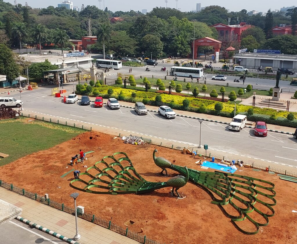 “ಒಂದು ಗಂಡಭೇರುಂಡ ಹಾಗೂ ಎರಡು ನವಿಲುಗಳನ್ನು ವಿನ್ಯಾಸ ಮಾಡಿ, ಫೈಬರ್ ಮೆಟೀರಿಯಲ್ ನಲ್ಲಿ ನಿರ್ಮಿಸಲು ಮೂರು ತಿಂಗಳು ಹಿಡಿಯಿತು. ತೋಟಗಾರಿಕಾ ಸಚಿವ ಎಸ್.ಎಸ್.ಮಲ್ಲಿಕಾರ್ಜುನ್ ಅವರು ಚೈನಾದ ಶಾಂಘೈ ವೃತ್ತದಲ್ಲಿ ನವಿಲುಗಳ ವಿನ್ಯಾಸವನ್ನು ಕಂಡು ಅದೇ ರೀತಿ ವಿಧಾನಸೌಧದ ಮುಂದಿನ ತೋಟದಲ್ಲಿ ಮಾಡುವಂತೆ ಸೂಚನೆ ನೀಡಿದ್ದರು. ಅದರಂತೆ ಇವುಗಳನ್ನು ನಿರ್ಮಿಸಲಾಗುತ್ತಿದೆ. ಫೈಬರ್ ವಸ್ತುಗಳಿಂದ ಮಾಡಿರುವುದರಿಂದ 25-30 ವರ್ಷಗಳ ಕಾಲ ಈ ರಚನೆಗಳು ಬಾಳಿಕೆ ಬರುತ್ತದೆ. ಕೇವಲ ಈ ಗಿಡಗಳಿಗೆ ಕಾಲ ಕಾಲಕ್ಕೆ ಗೊಬ್ಬರ, ಗಿಡಗಳ ಕಟಿಂಗ್ ಮಾಡಿದರೆ ನಿರ್ವಹಣೆ ಮಾಡಬಹುದು. ಈ ಎರಡು ಗಿಡಗಳ ಕಲಾಕೃತಿಯಿಂದ ವಿಧಾನಸೌಧಕ್ಕೆ ಮತ್ತಷ್ಟು ಕಳೆ ಬರಲಿದೆ” ಎಂದು ರಾಜ್ಯ ತೋಟಗಾರಿಕೆ ಇಲಾಖೆ ಜಂಟಿ ನಿರ್ದೇಶಕ ಡಾ.ಎಂ.ಜಗದೀಶ್ ಬೆಂಗಳೂರು ವೈರ್ ಗೆ ತಿಳಿಸಿದ್ದಾರೆ.