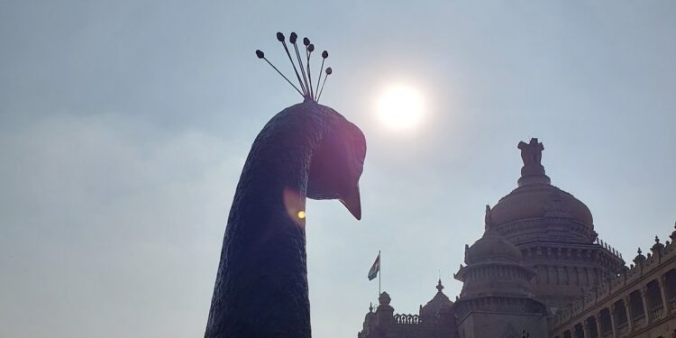ಬೆಂಗಳೂರು, ಡಿ.15 www.bengaluruwire.com : ವಿಧಾನಸೌಧಕ್ಕೆ ಎರಡು ನವಿಲುಗಳು ಆಗಮಿಸಿವೆ. ಇವು ನೋಡಲು ಬಹಳ ಆಕರ್ಷಕವಾಗಿವೆ. ಈ ಶಕ್ತಿ ಕೇಂದ್ರದಲ್ಲಿ ಕೆಲಸ ಮಾಡುವ ನೌಕರರೂ ಈ ನವಿಲುಗಳನ್ನು ನೋಡಲು ಕುತೂಹಲ ತೋರುತ್ತಿದ್ದಾರೆ.