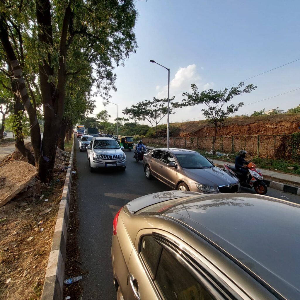 ಹೊರಕೆರೆಹಳ್ಳಿ ಜಂಕ್ಷನ್ ಬಳಿಯ ಸರ್ವೀಸ್ ರಸ್ತೆಯಲ್ಲಿ ವಾಹನ ದಟ್ಟಣೆ ಅವಧಿ ಸಂದರ್ಭ ಆಮೆಗತಿಯಲ್ಲಿ ಸಂಚರಿಸುತ್ತಿರುವ ವಾಹನಗಳ ಚಿತ್ರ.